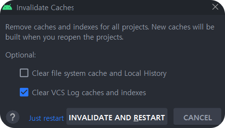 File - Invalidate Caches - INVALIDATE AND RESTART